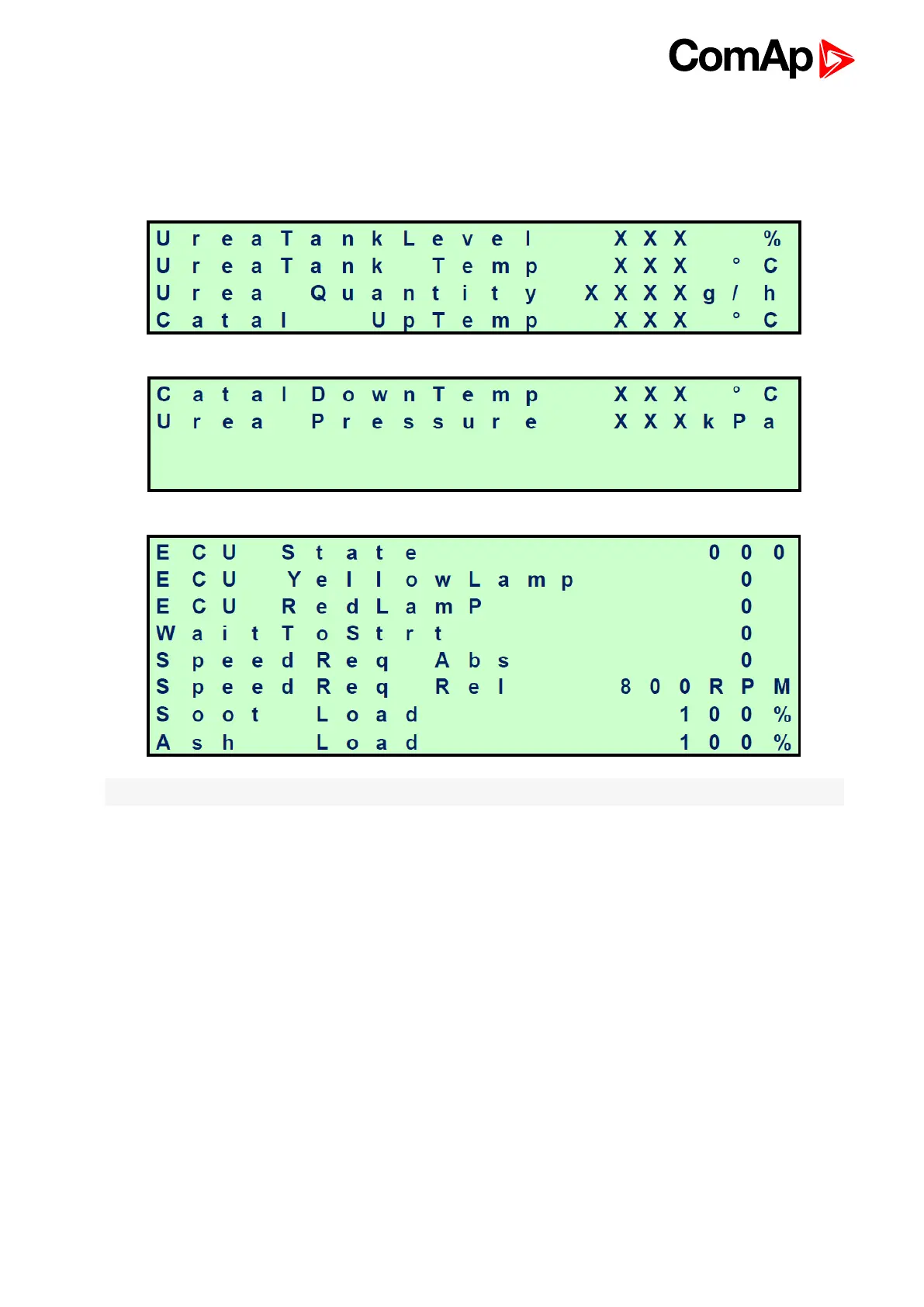 Note: Tier4 values Soot Load and Ash Load are visible on ECU screen as well.