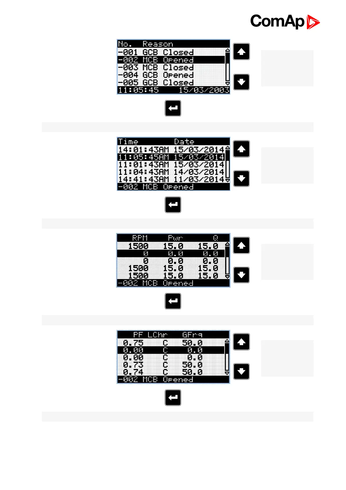 Note: Use Enter button to move to the next page of history log.