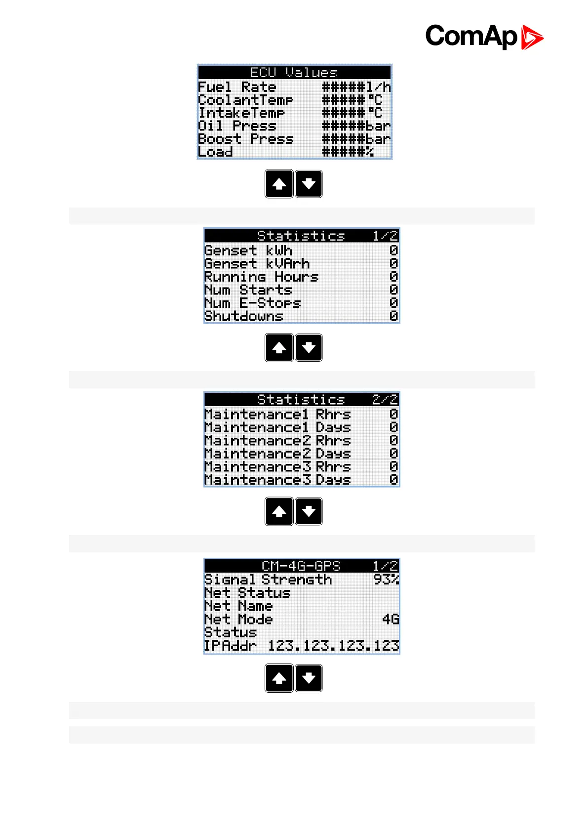 Note: Use Up and Down button to move between measurement pages.