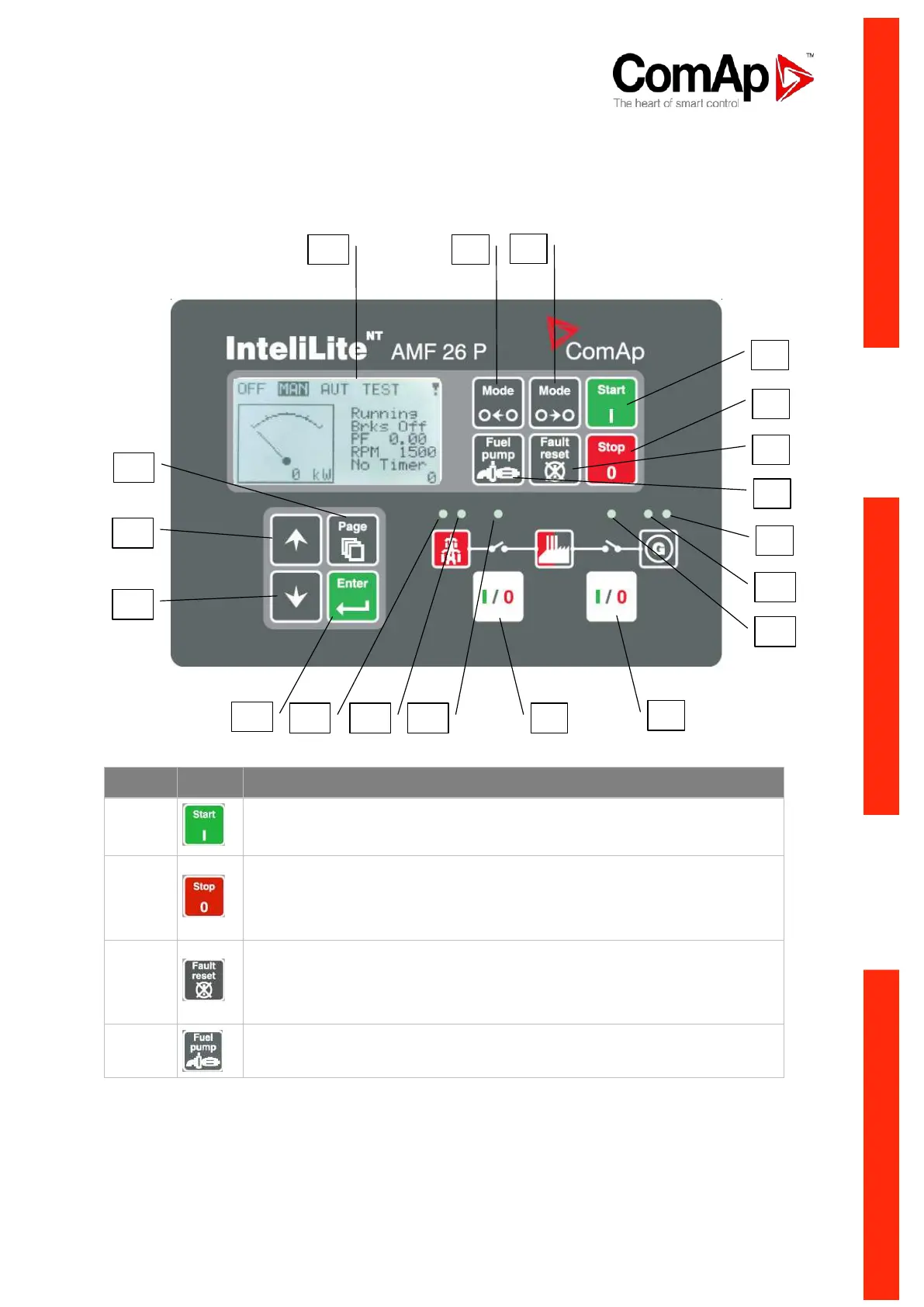 STOP button. Works in MAN mode only. Press this button to initiate the stop