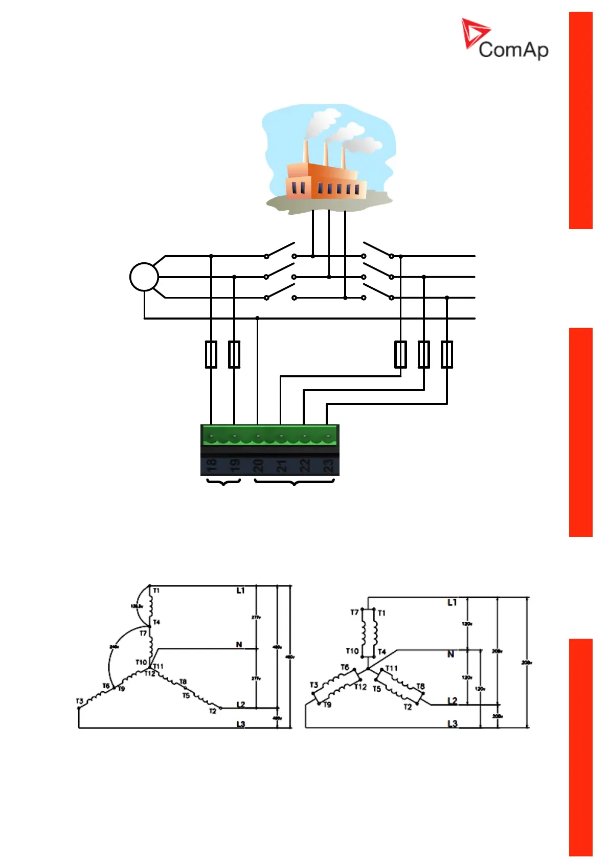 AMF APPLICATION 3 PHASE 4 WIRES TERMINALS CONNECTION