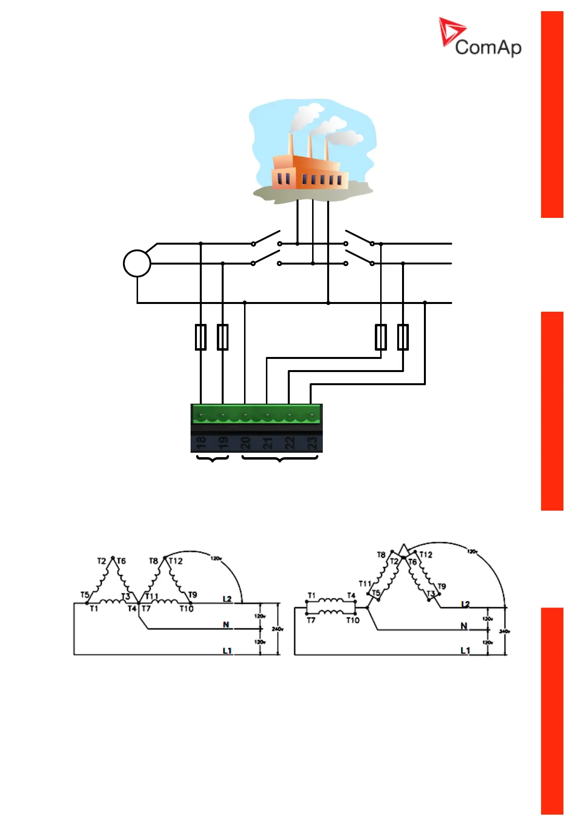 AMF APPLICATION SPLIT PHASE TERMINALS CONNECTION