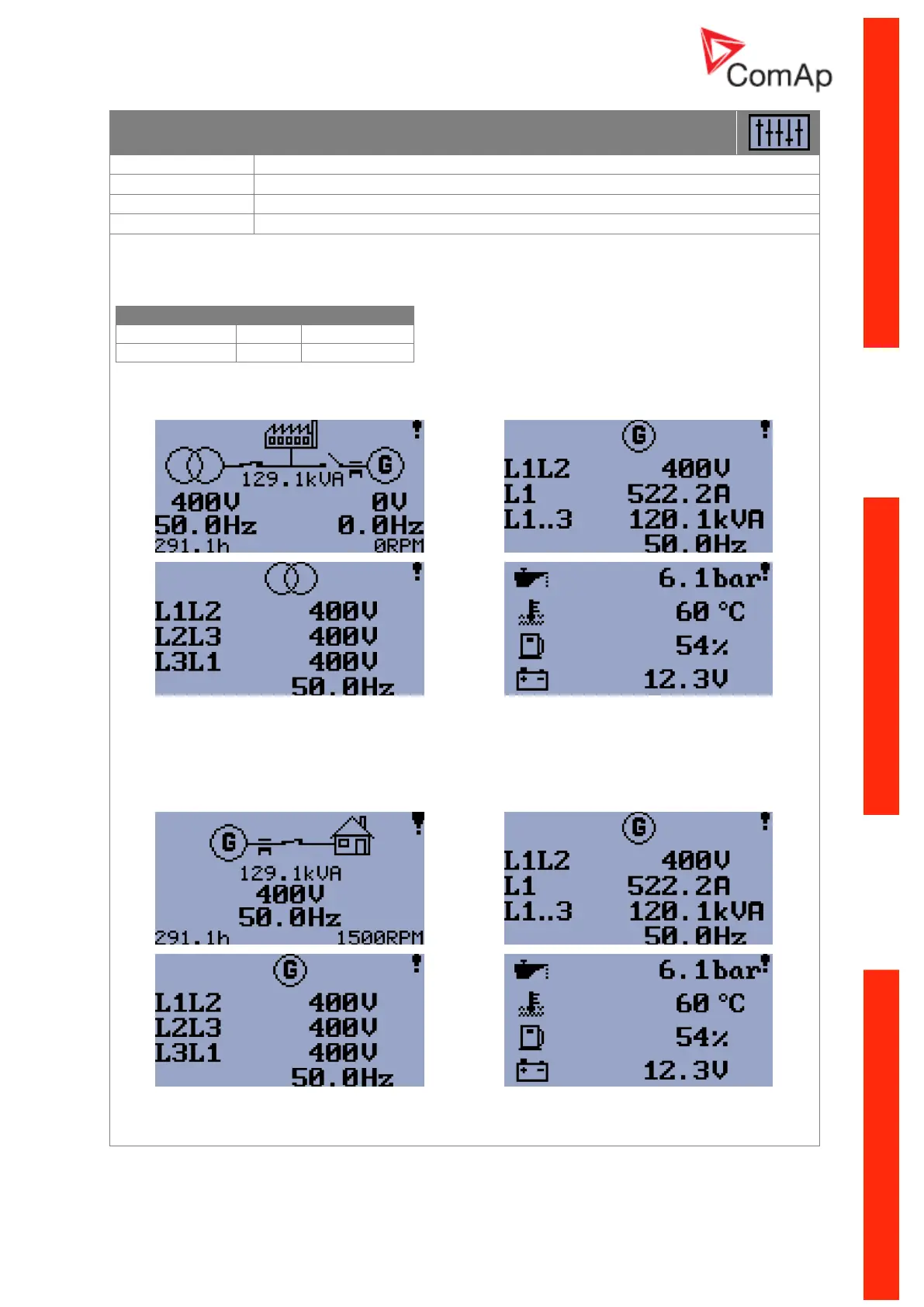 Controller main screens in MRS mode (AMF Function disabled)