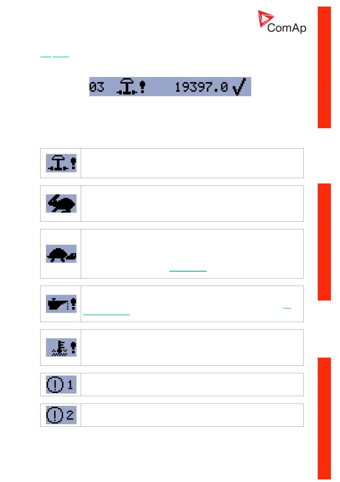 Engine will stop when oil pressure declined to or less than 1 bar or binary input I22