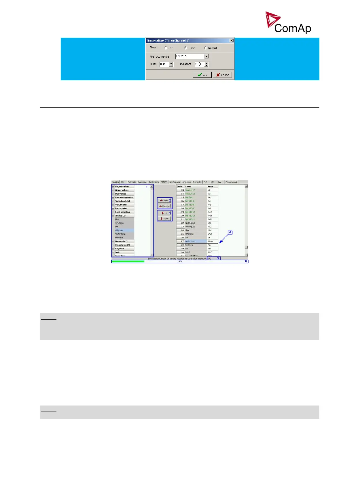 It is possible to change History records content. Each record contains date, time and cause of the record as