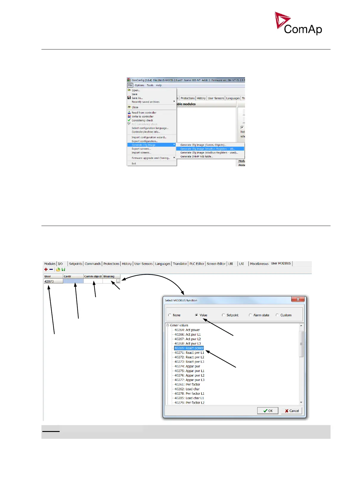registers corresponding to objects in the controller can be exported to text form in GenConfig.