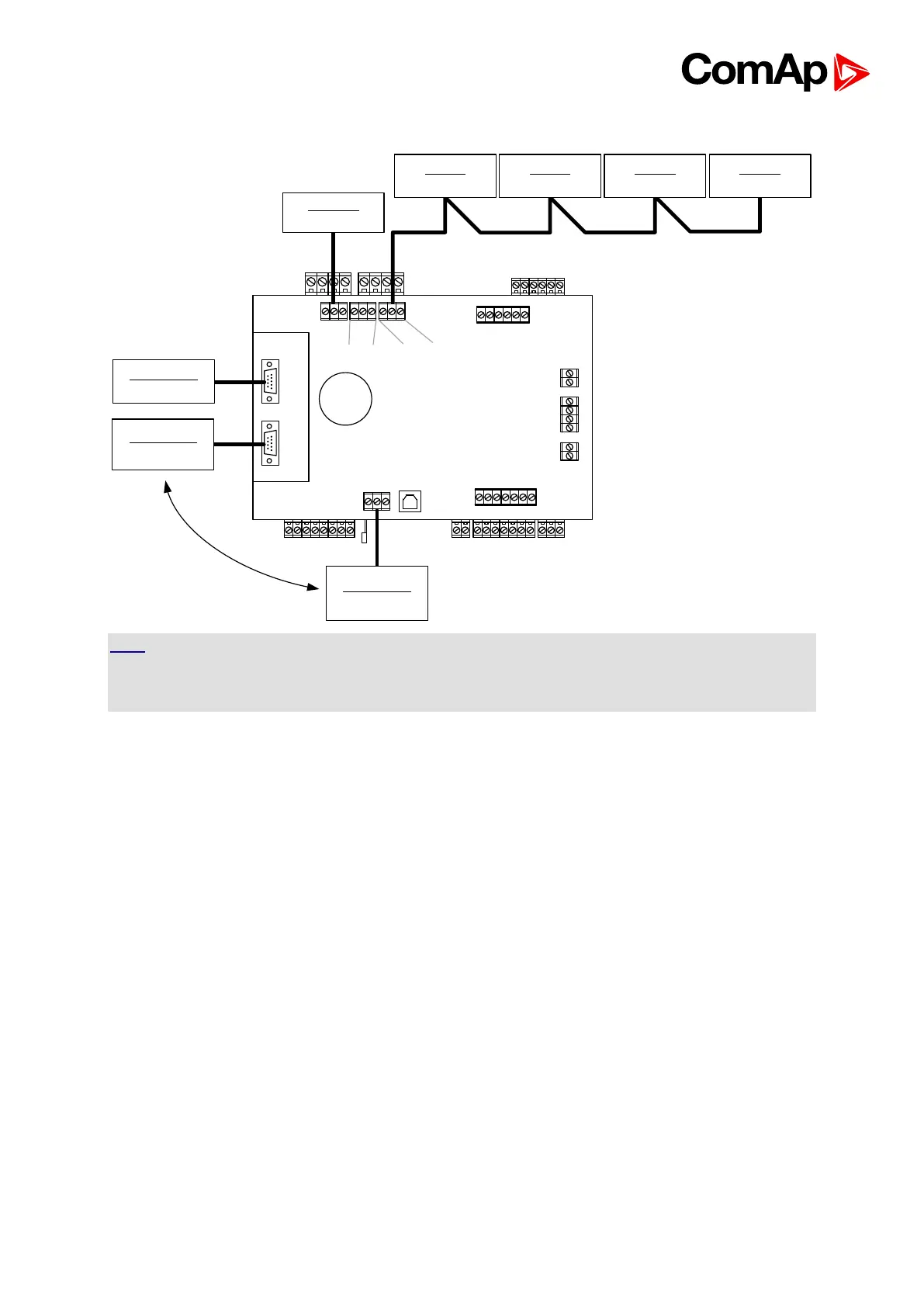 Communication on RS232(2) can be switched to RS485(2) so one InteliVision can be