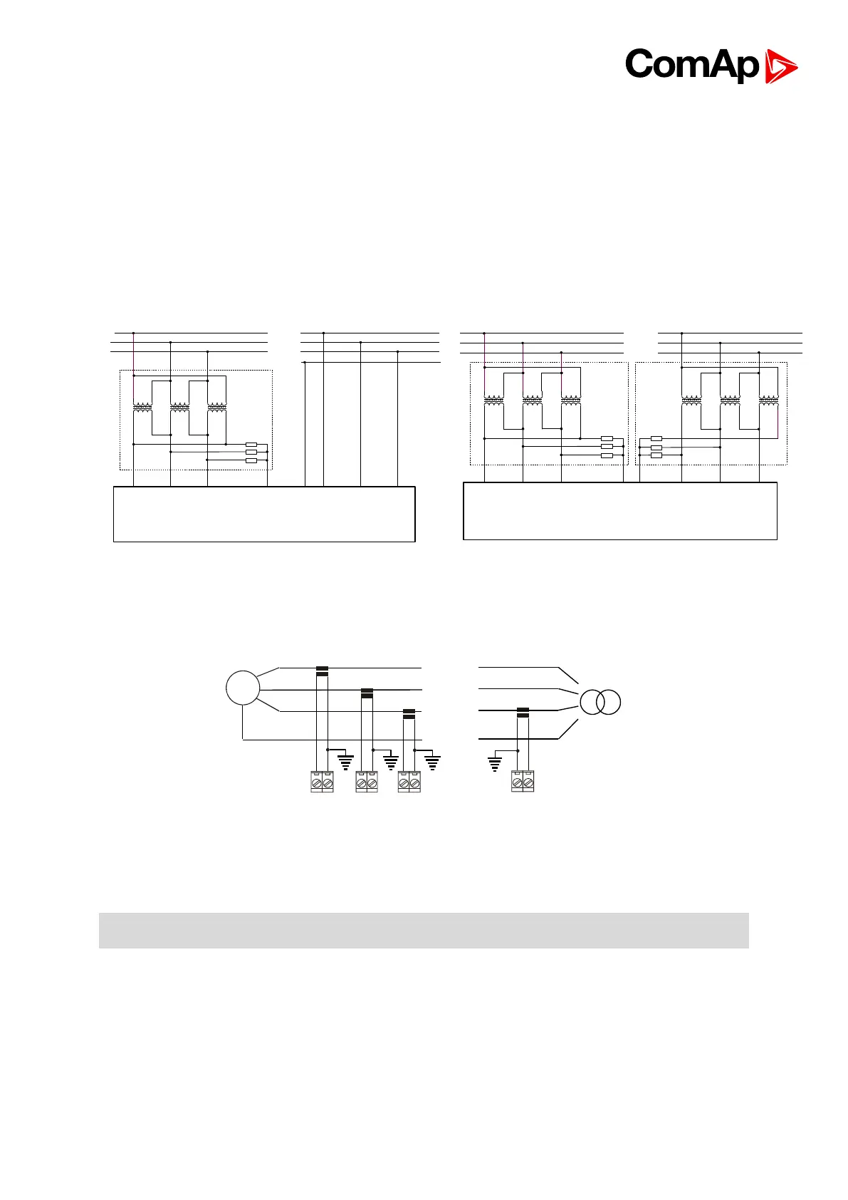 For optional separation of Mains/bus and generator voltage from the controller (e.g. on ships)