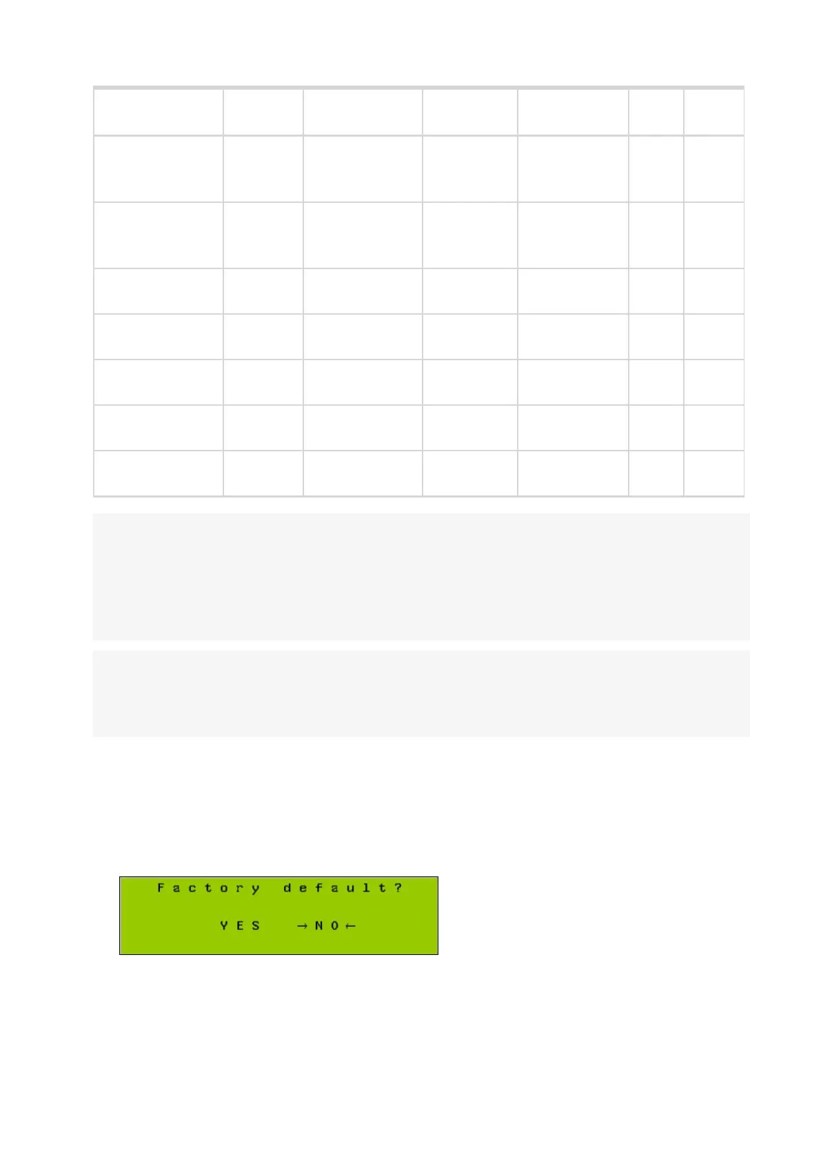 2. Press ← and ↓ to enter the Factory default activation screen:
