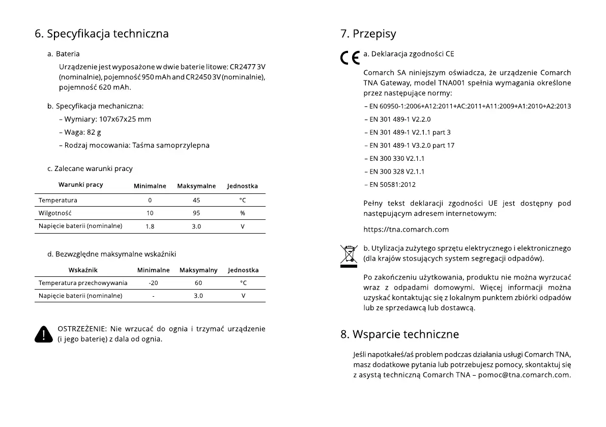 OSTRZEŻENIE: Nie wrzucać do ognia i trzymać urządzenie