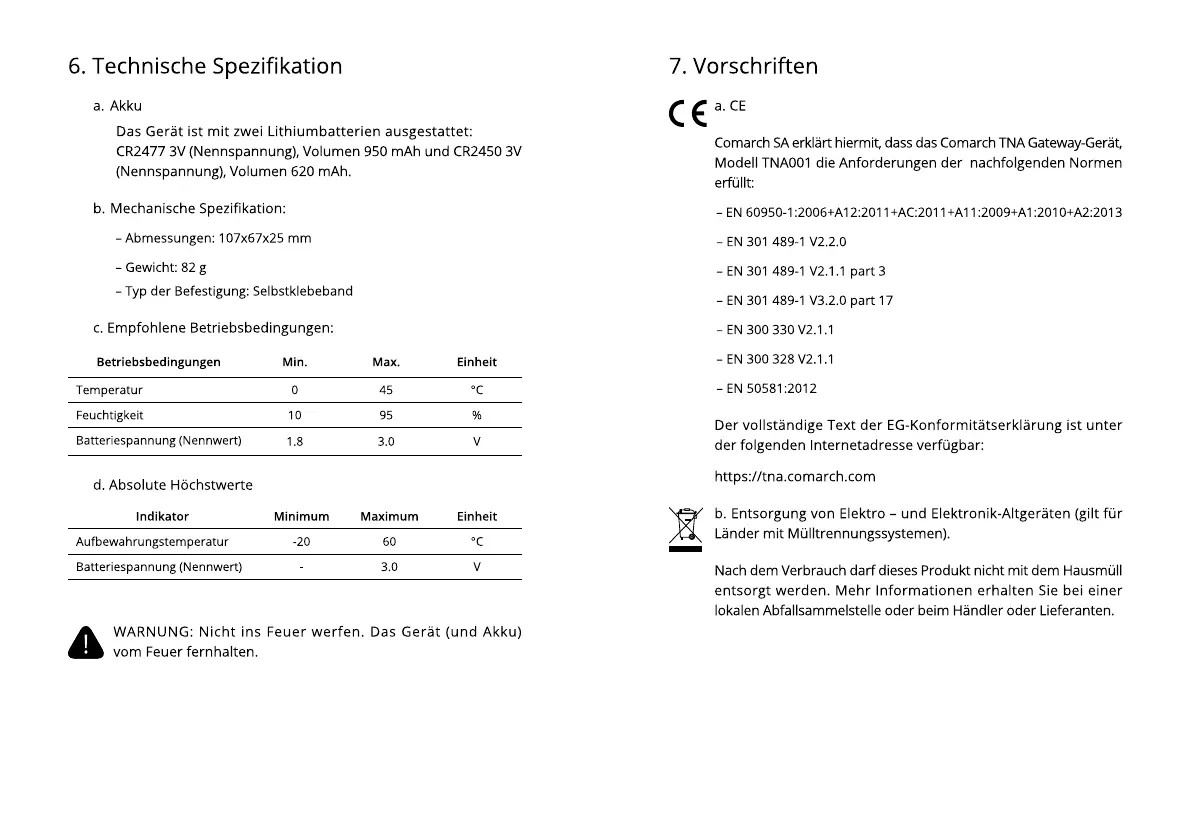 WARNUNG: Nicht ins Feuer werfen. Das Gerät (und Akku)