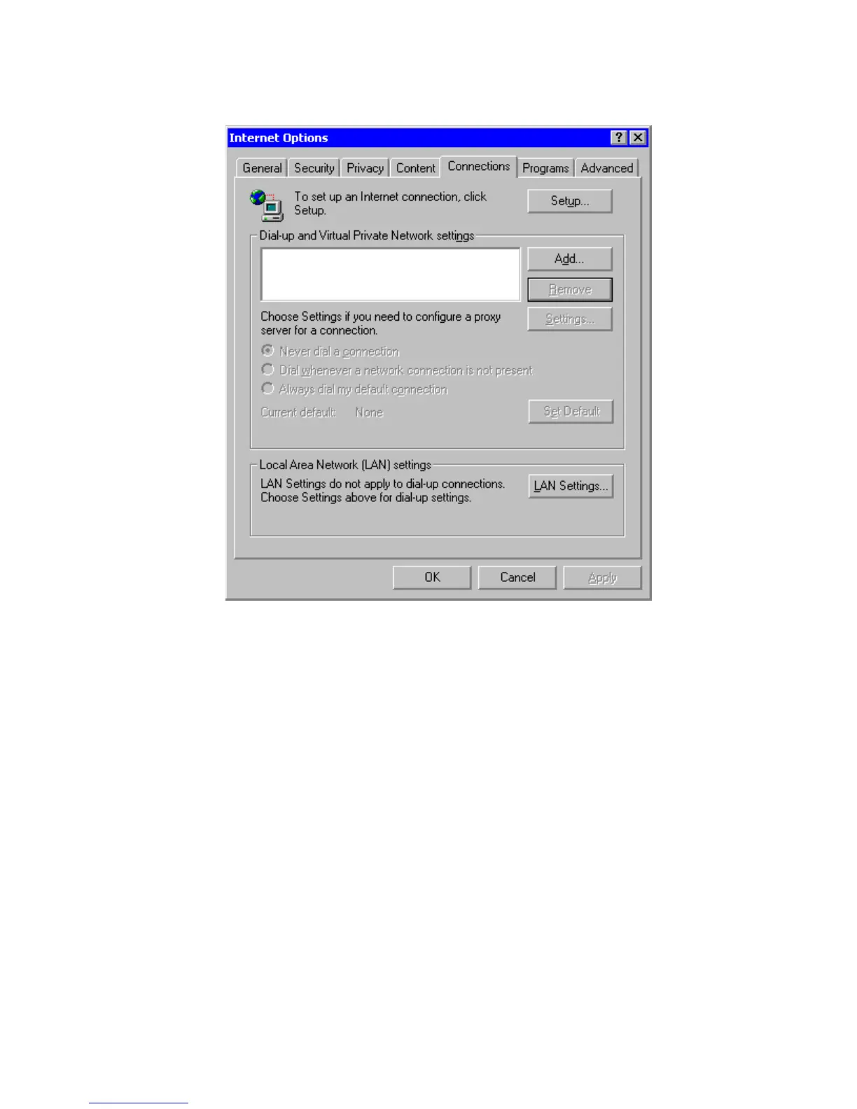 4. Using the “Network Connection Wizard”, follow the steps, entering the information below.