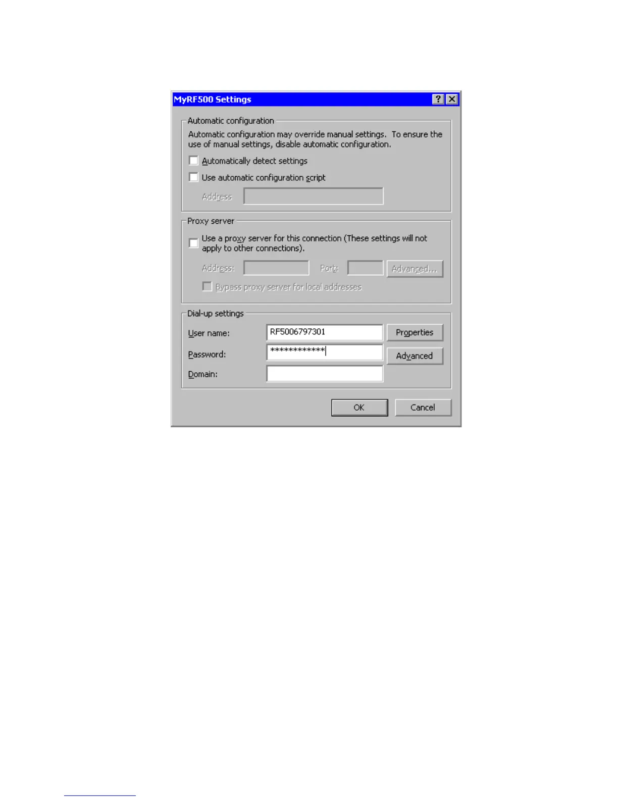 10. Enter both the User name and Password as “RF500 - - - - - - -”. Do not literally type the