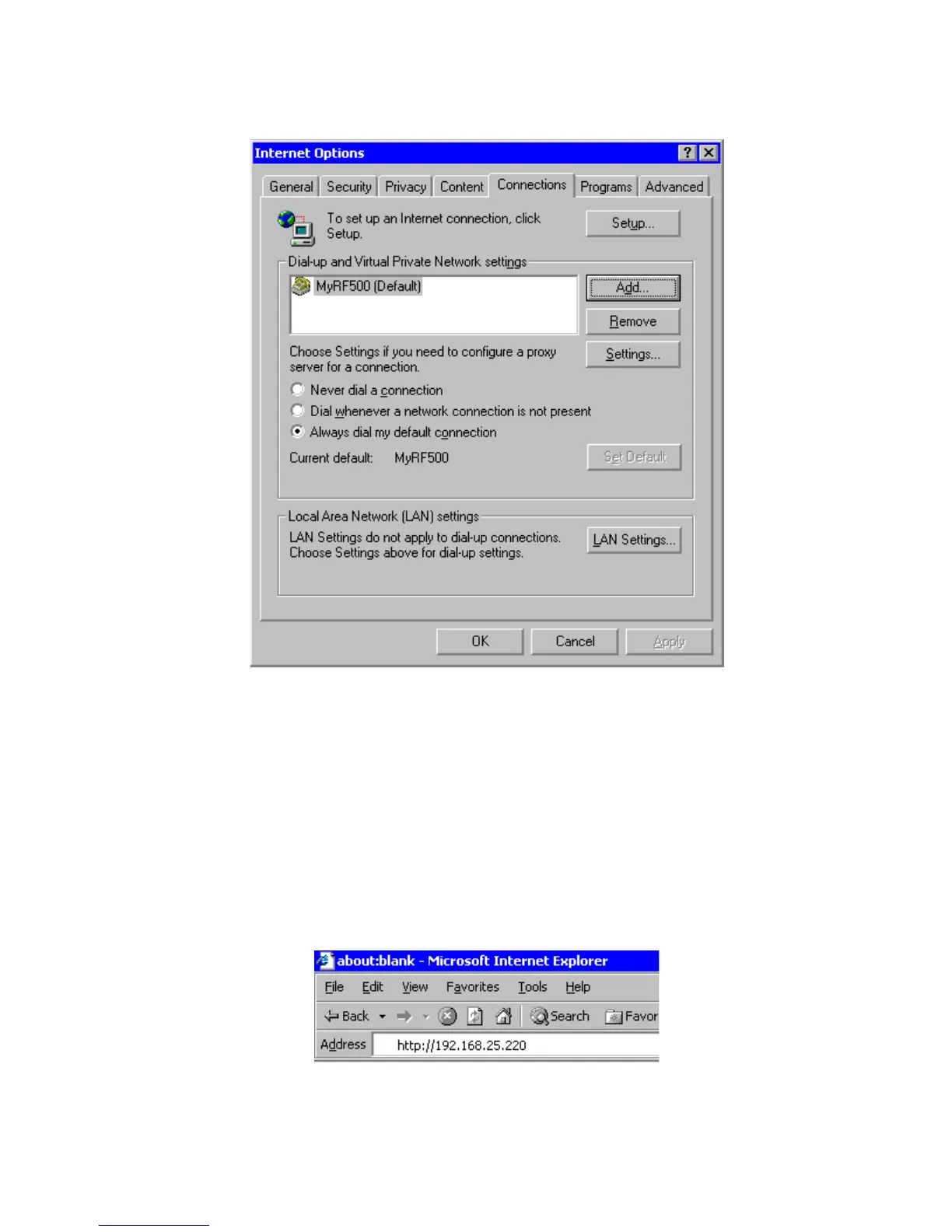 Each Gateway is shipped with a default IP address of 192.168.25.220. Start the Web Browser