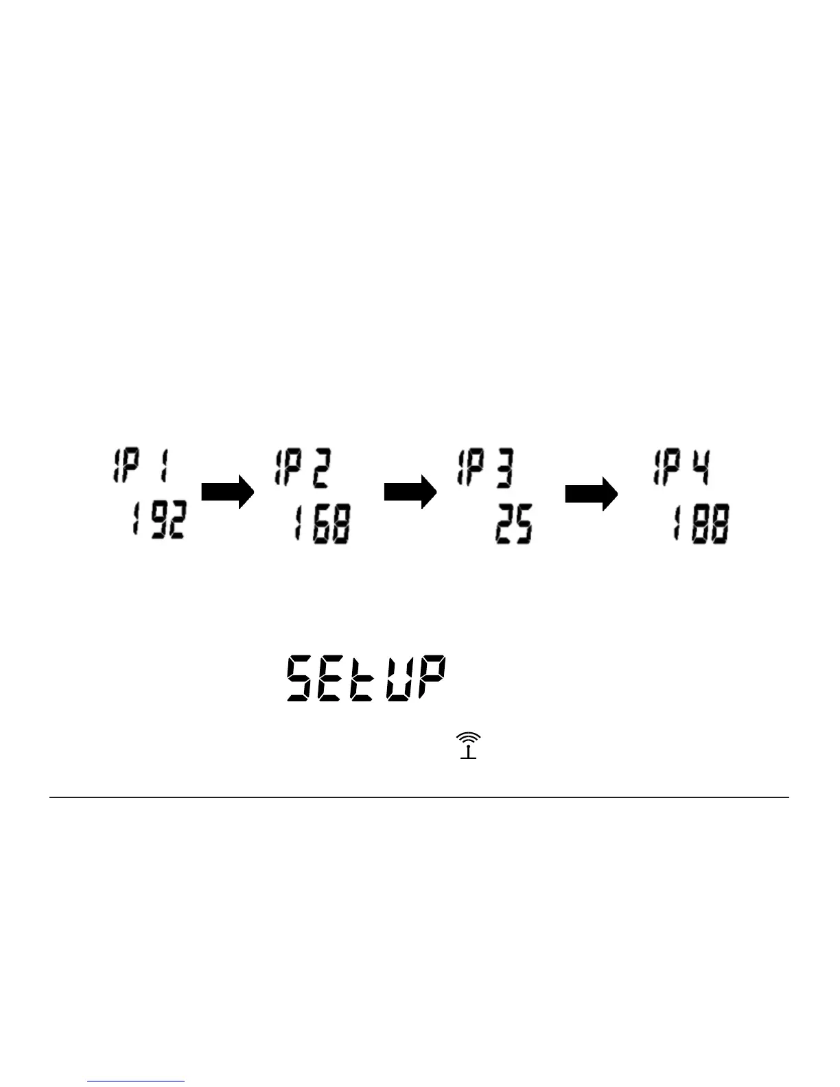 4. Once the set of four numbers for the IP address has been displayed the LCD will nally show SETUP as shown
