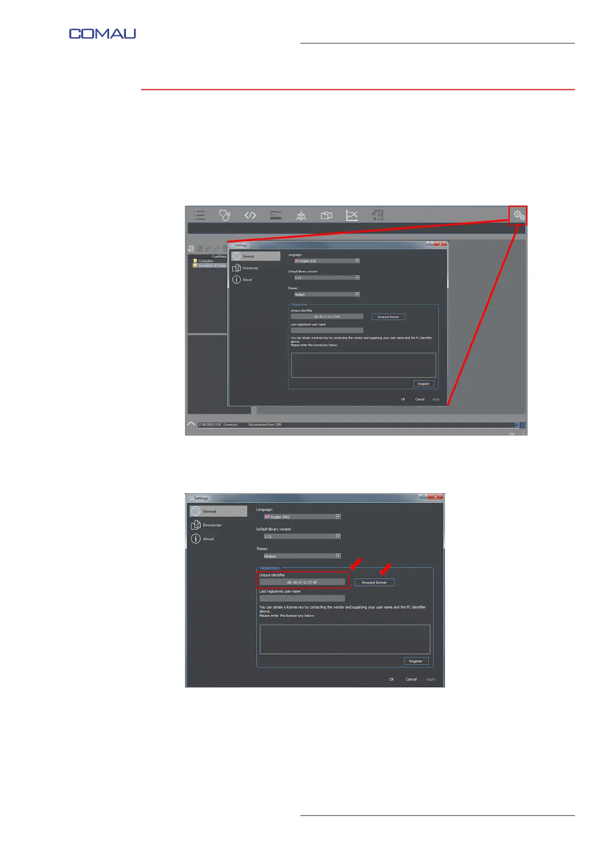 c. Click Request license key which opens an email to send such a string to COMAU