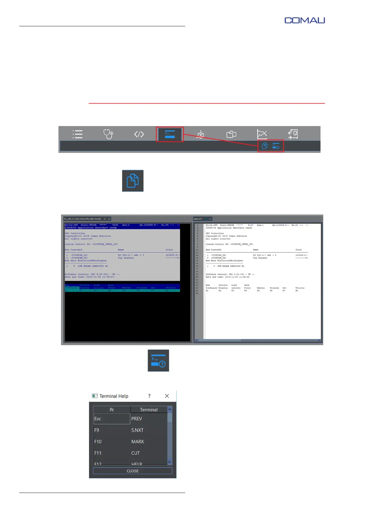 page 68), to be able to open its Terminal window, by clicking the Terminal key.