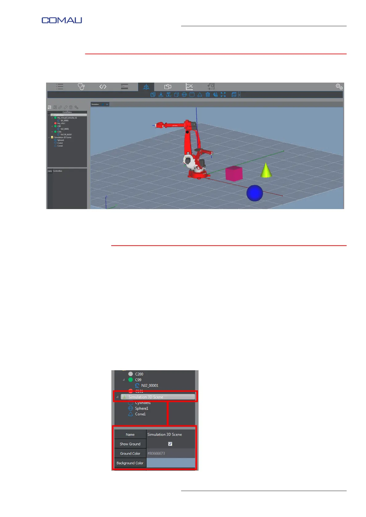 It is also allowed modifying the general settings of the 3D simulation scene, by selecting