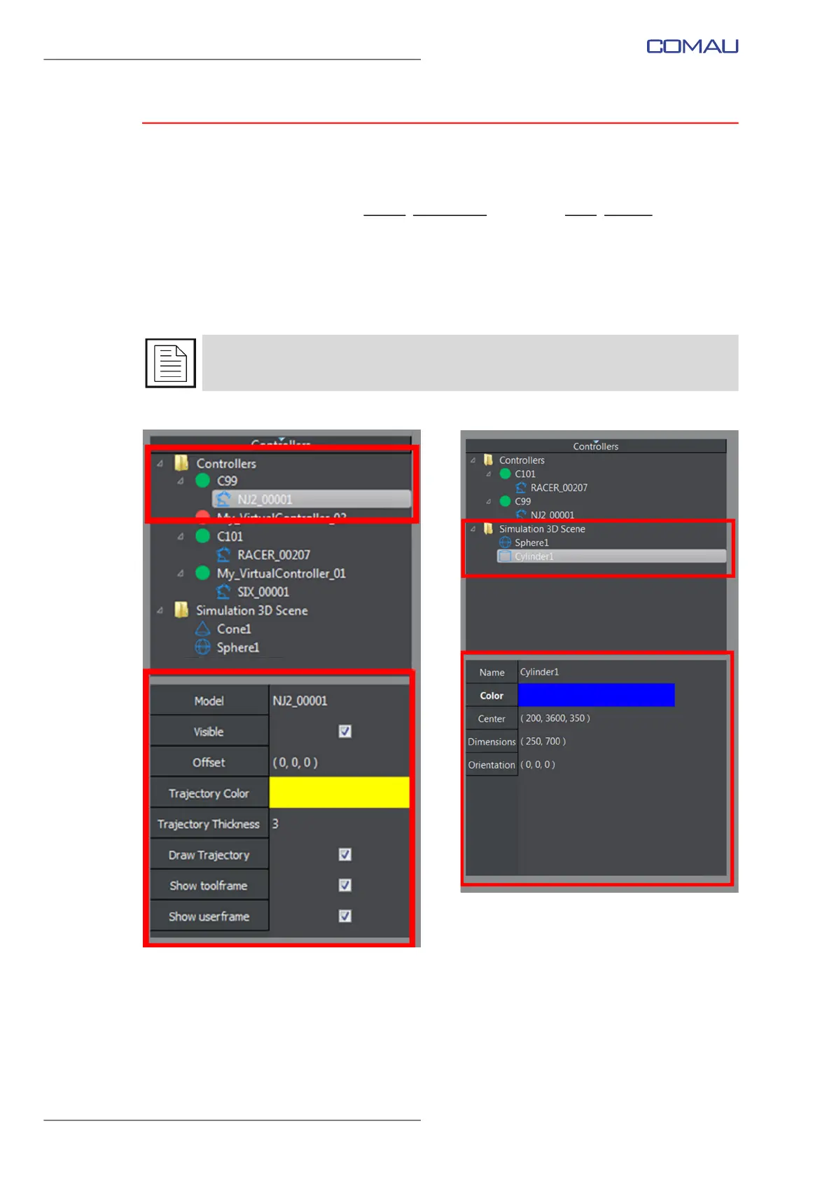 refer to par. 4.6 3D Visualization on page 43, Robot and Object subsections.