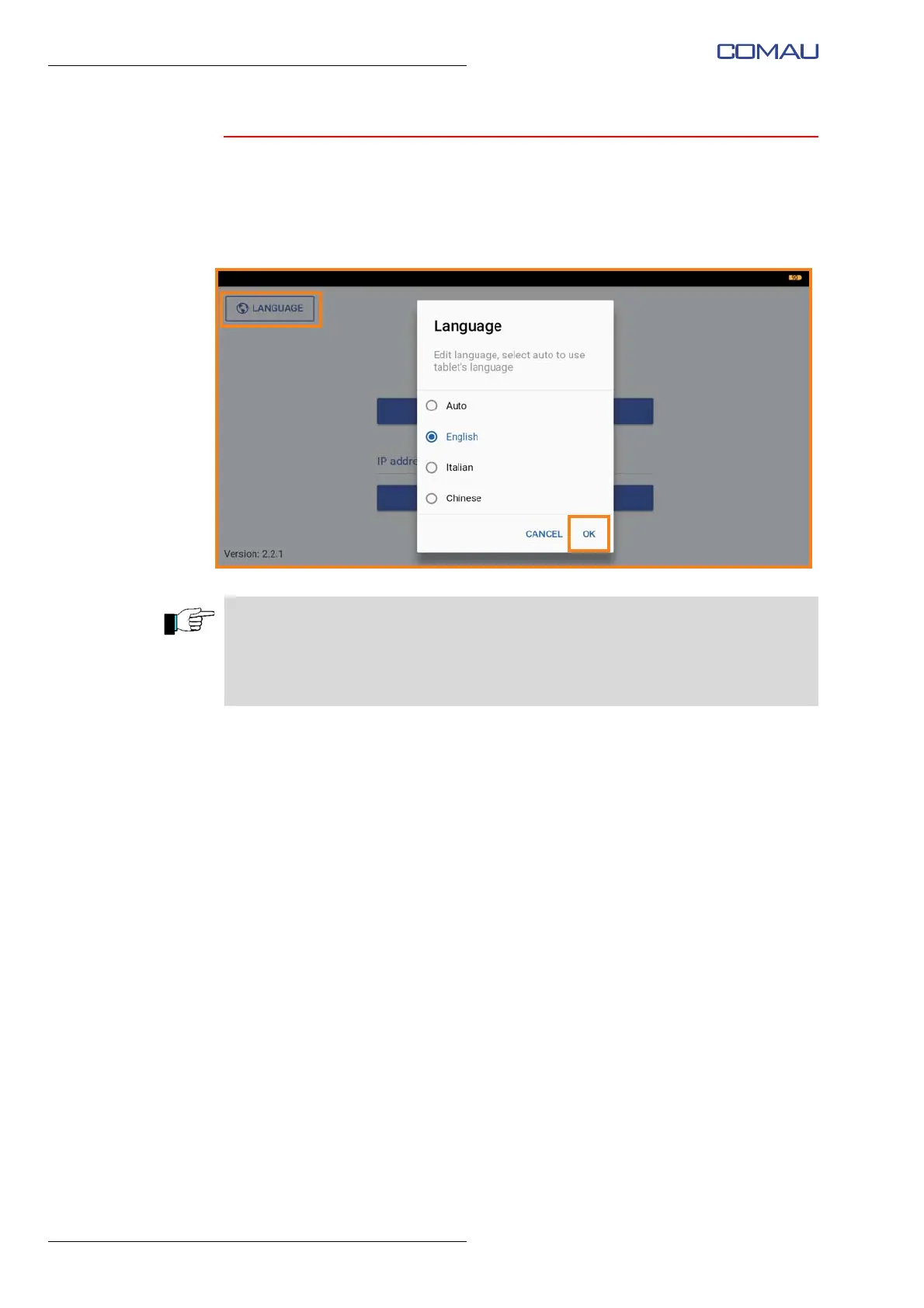 – in the pop-up menu, select the desired language and confirm by pressing “OK”.