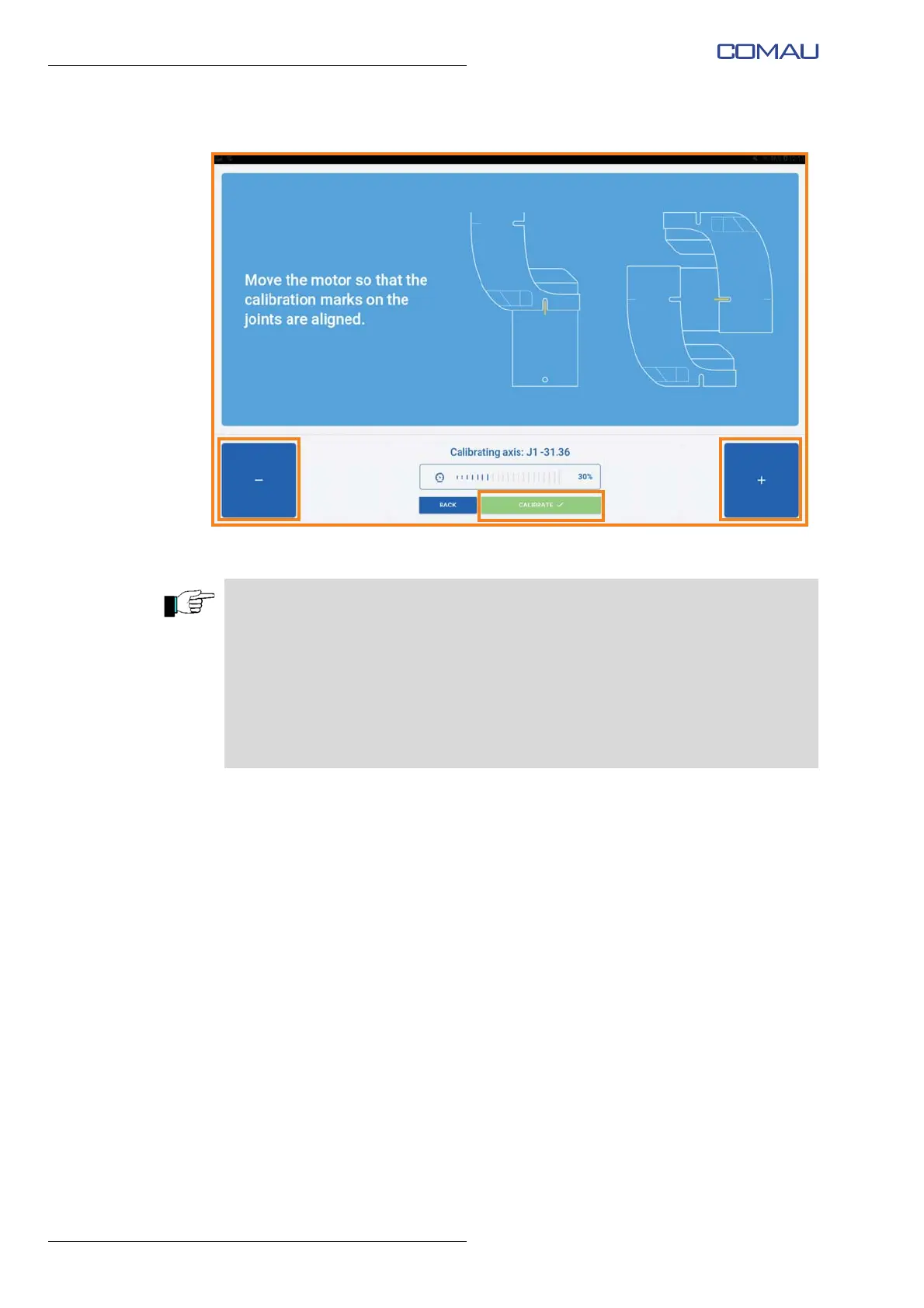 – repeat the calibration operations for the remaining axes of the Robot.