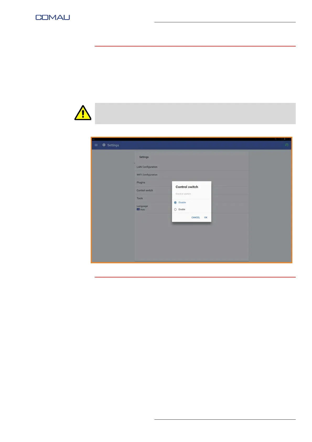 Selecting the “Control switch” item, a pop-up window will appear through which it will be