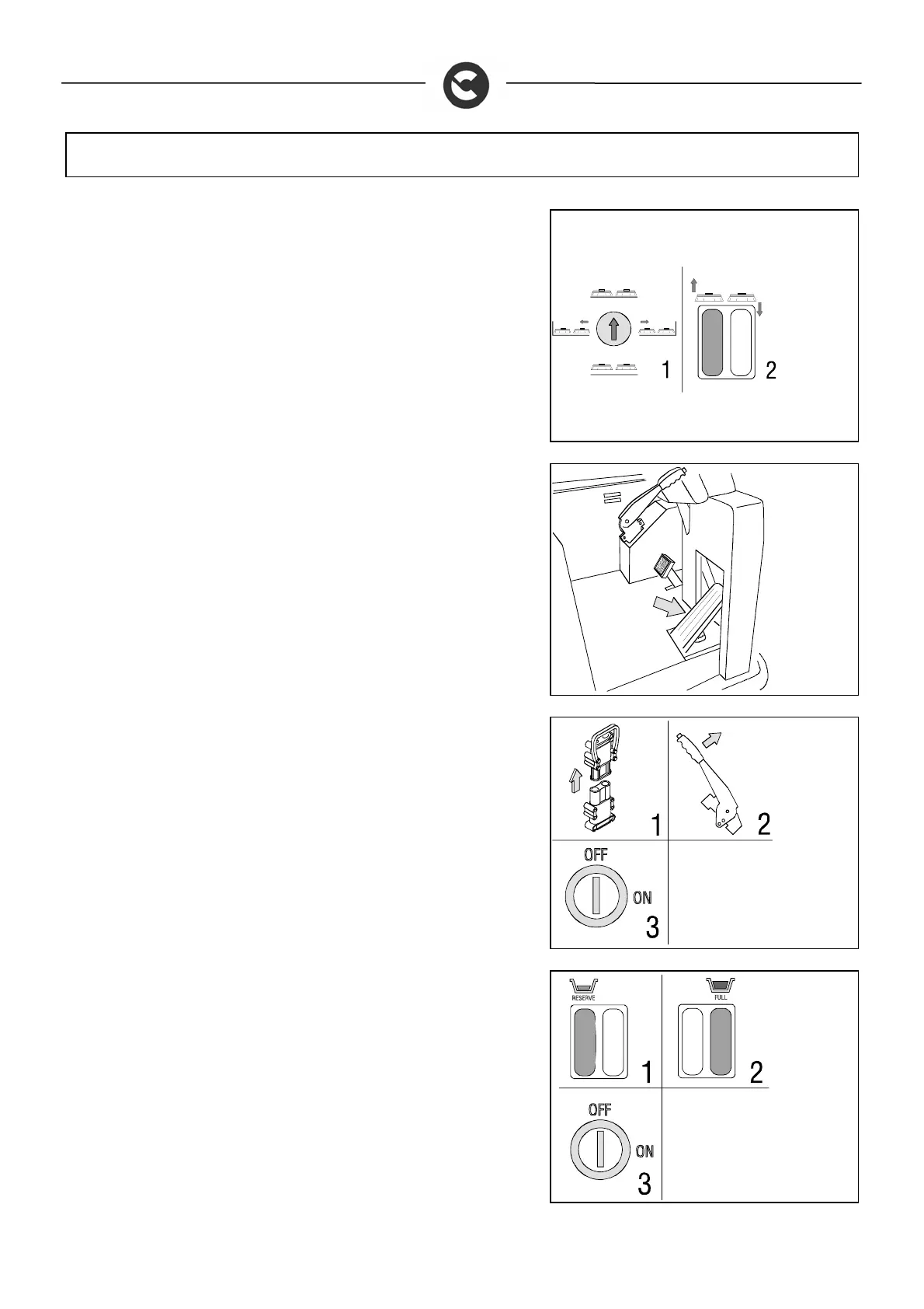 handle (1) to the left of the operator's position, pull the emergency brake (2),