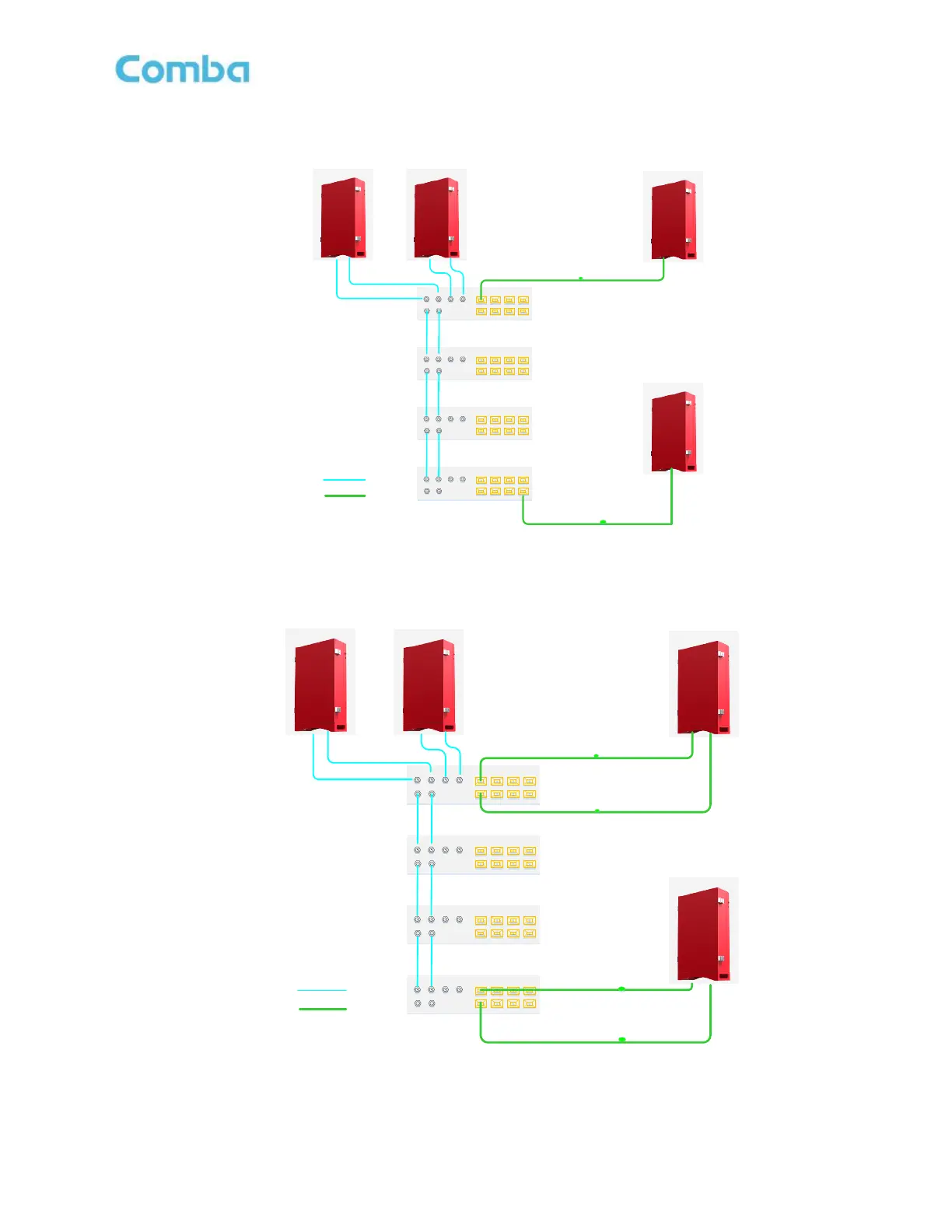 Comba Telecom CriticalPoint UHF DAS - Application 2: 2 Mu (Main Mu and Backup Mu) Connect 32 Rus; Application 3: 2 Mu (Main Mu and Backup Mu) Connect 16 Rus with Optical Fiber Backup