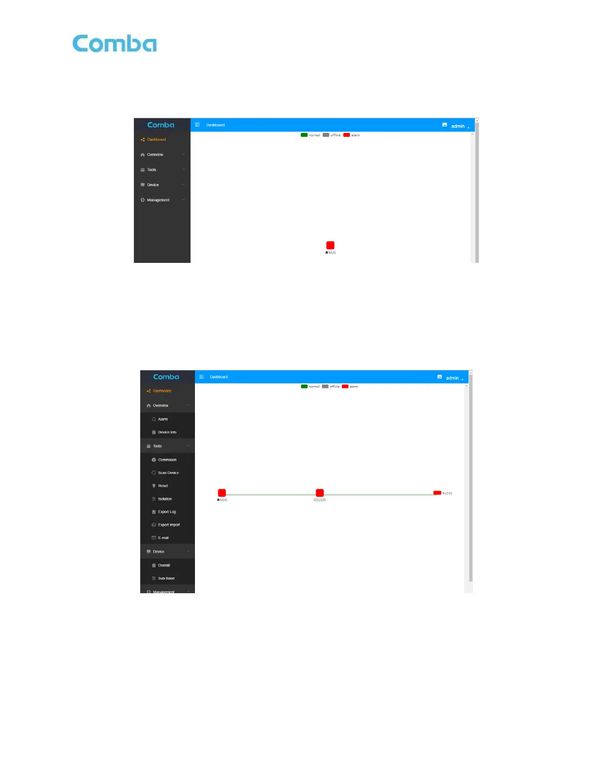 On Comba Web GUI Home Screen, there are four Menu bars: