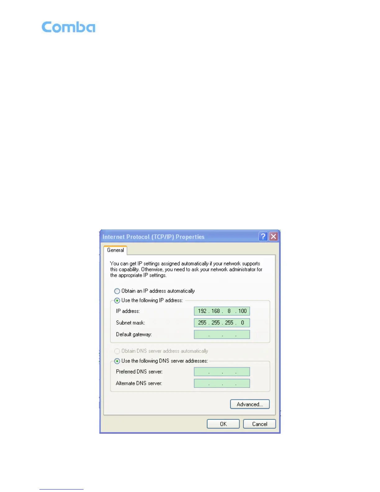In order to access to equipment by IP protocol, the PC must be set with proper IP address and subnet