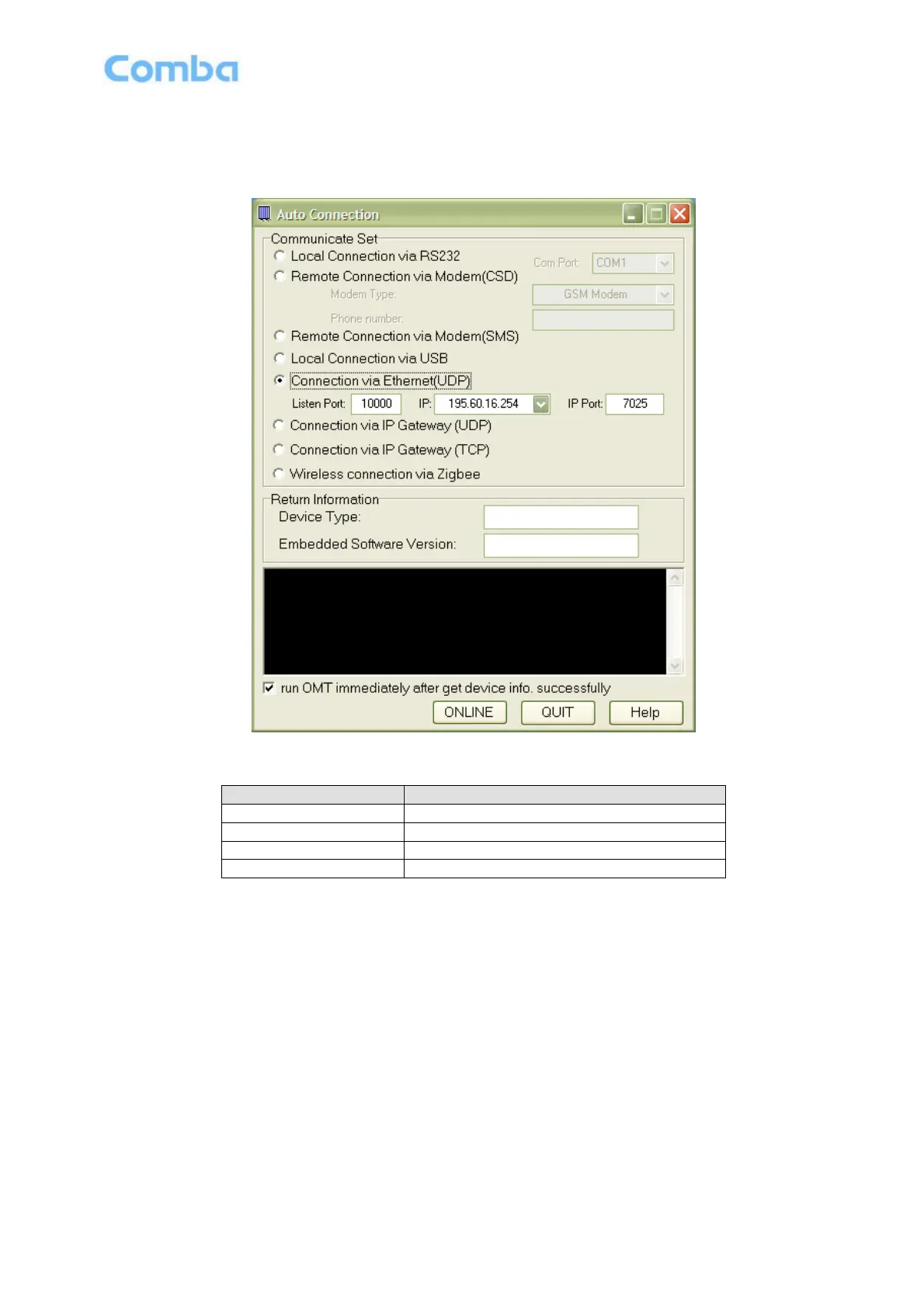 Choose “Connection via Ethernet (UDP)” and click “ONLINE”.