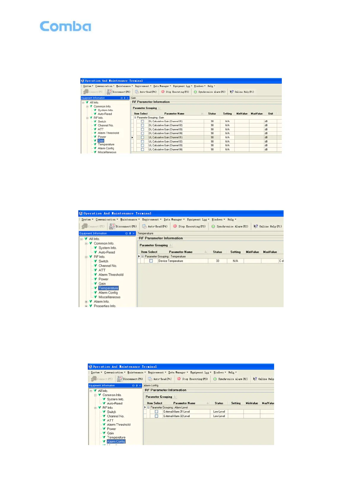 Comba Telecom RX-1839 - Gain; Temperature; Alarm Config