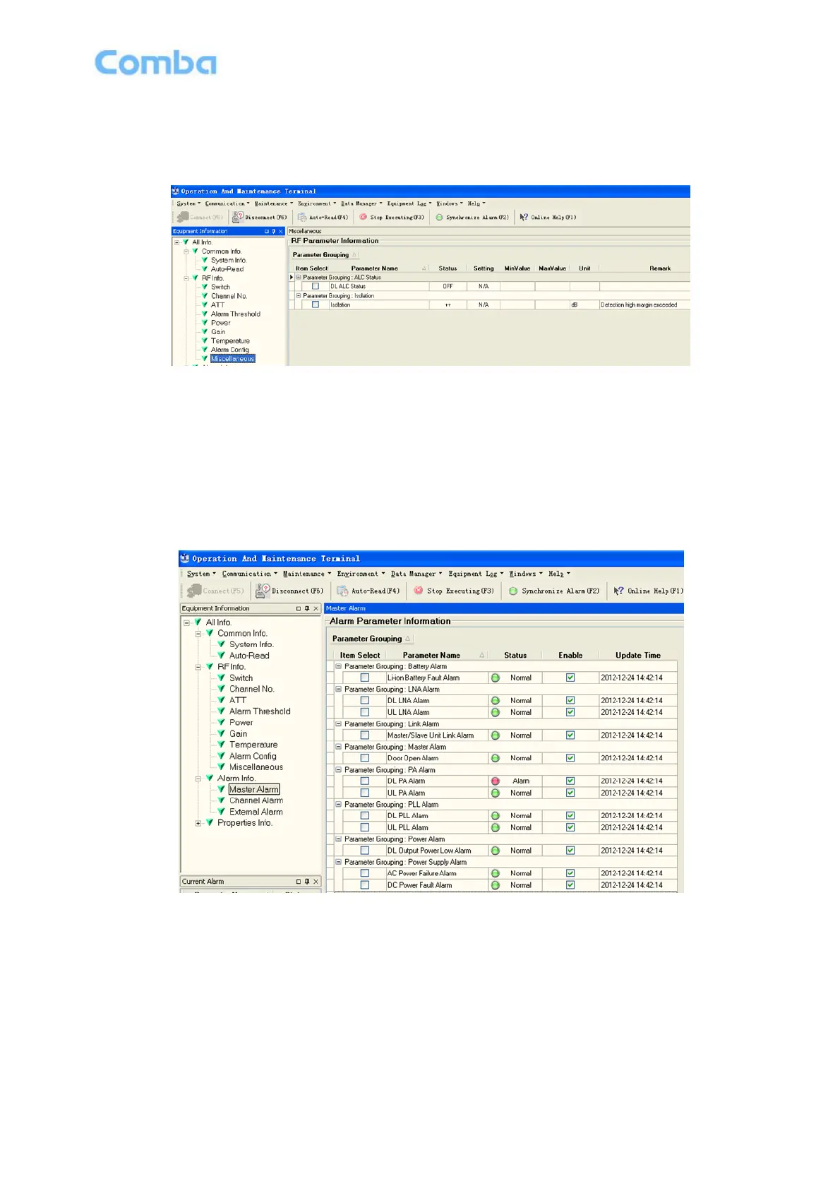 The picture below shows the master alarm information.