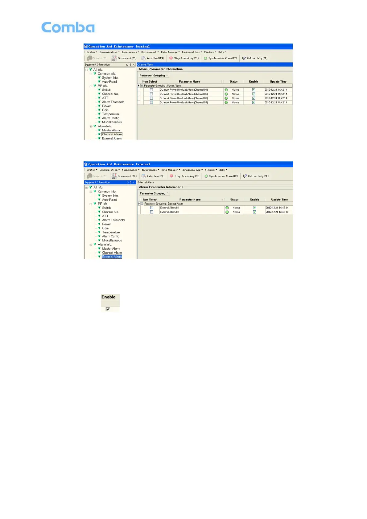 ticking the [Enable] box, the alarms can be monitored by the OMT/OMC.