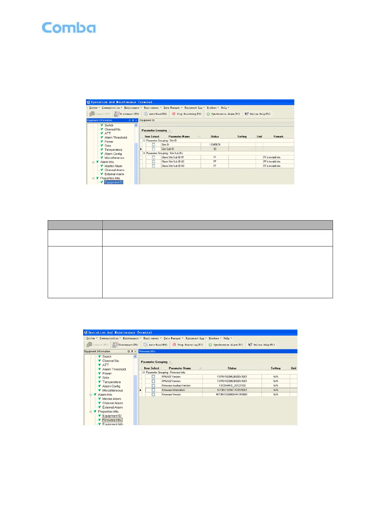Table 7: Equipment ID Parameter