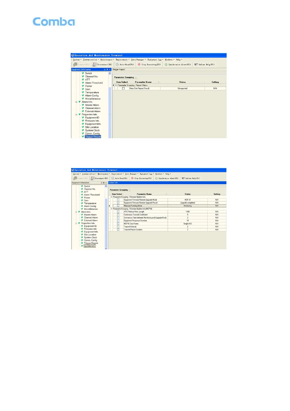Comba Telecom RX-1839 - Trigger Report; Update Info