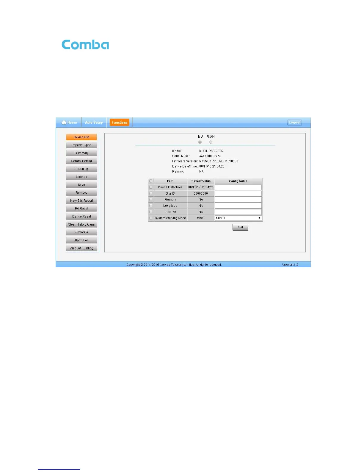 Note: Users can input maximum 30 bytes characters in Device Info.