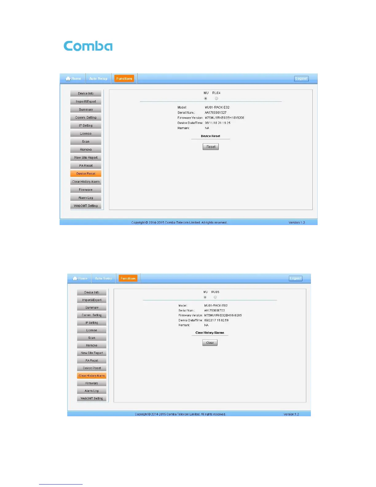 Note: Device Reset process will last about 2~4 minutes. For MU monitor reset, users need to re-login