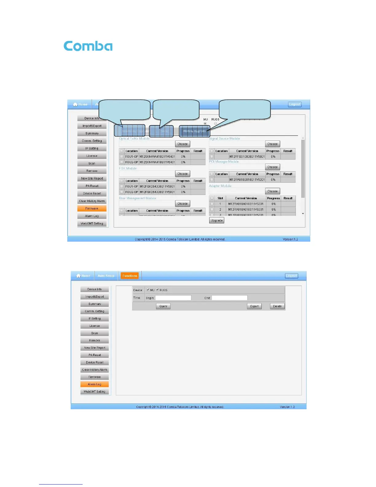 There are three functions on the [Firmware] bar: [Monitoring Upgrade], [Swap] and [Module Upgrade].