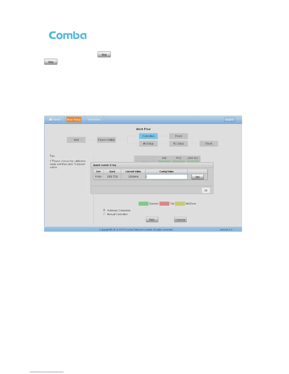 Note: Calibration is to adjust MU and RU gain to make sure system gain is normal, if the band have been