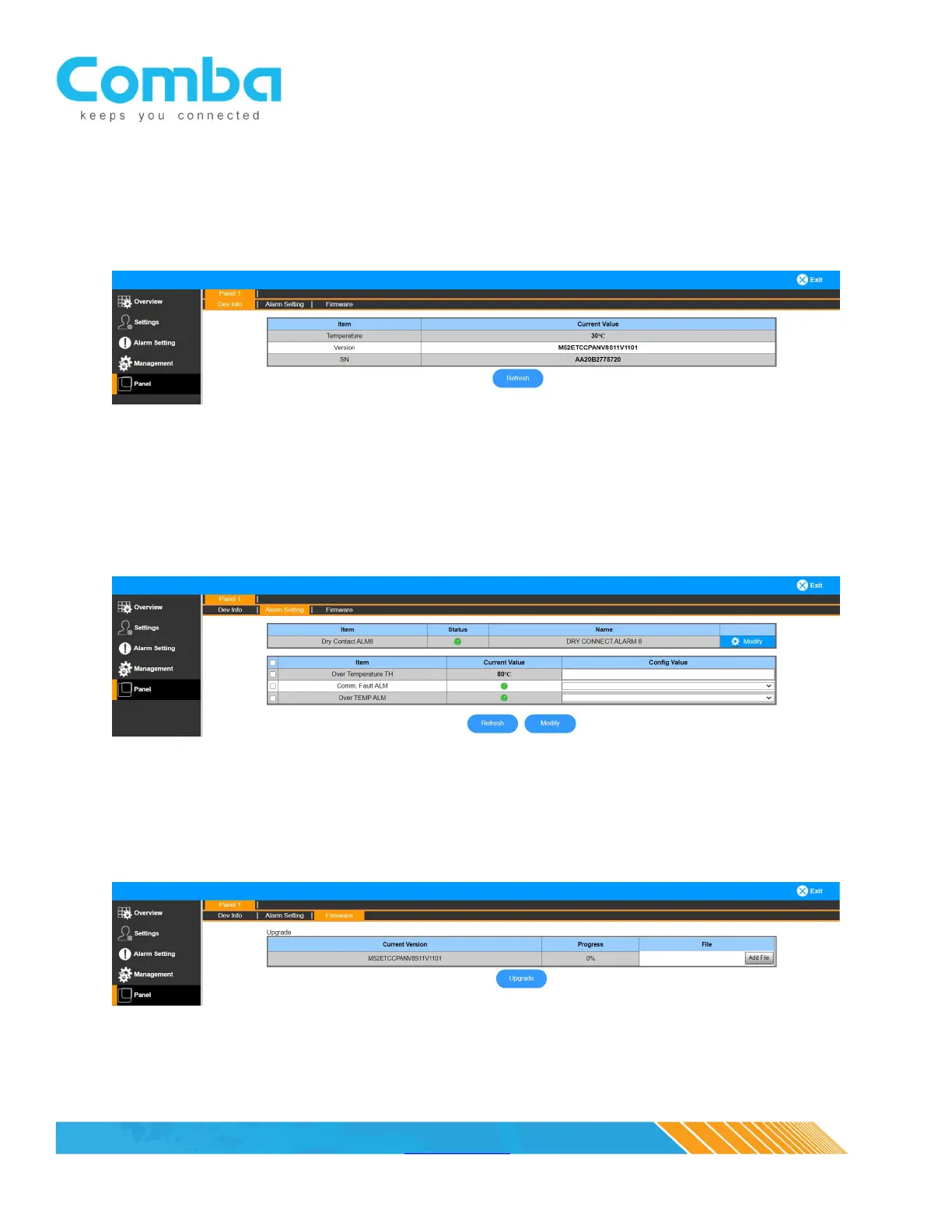 Dev Info: This shows the device information, including device temperature, firmware version and the