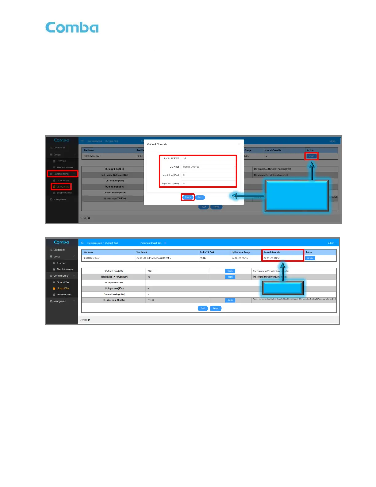 • Enter the Manual Measurements for <Input Min (dBm)> and <Input MAX (dBm)> and click <Submit>.