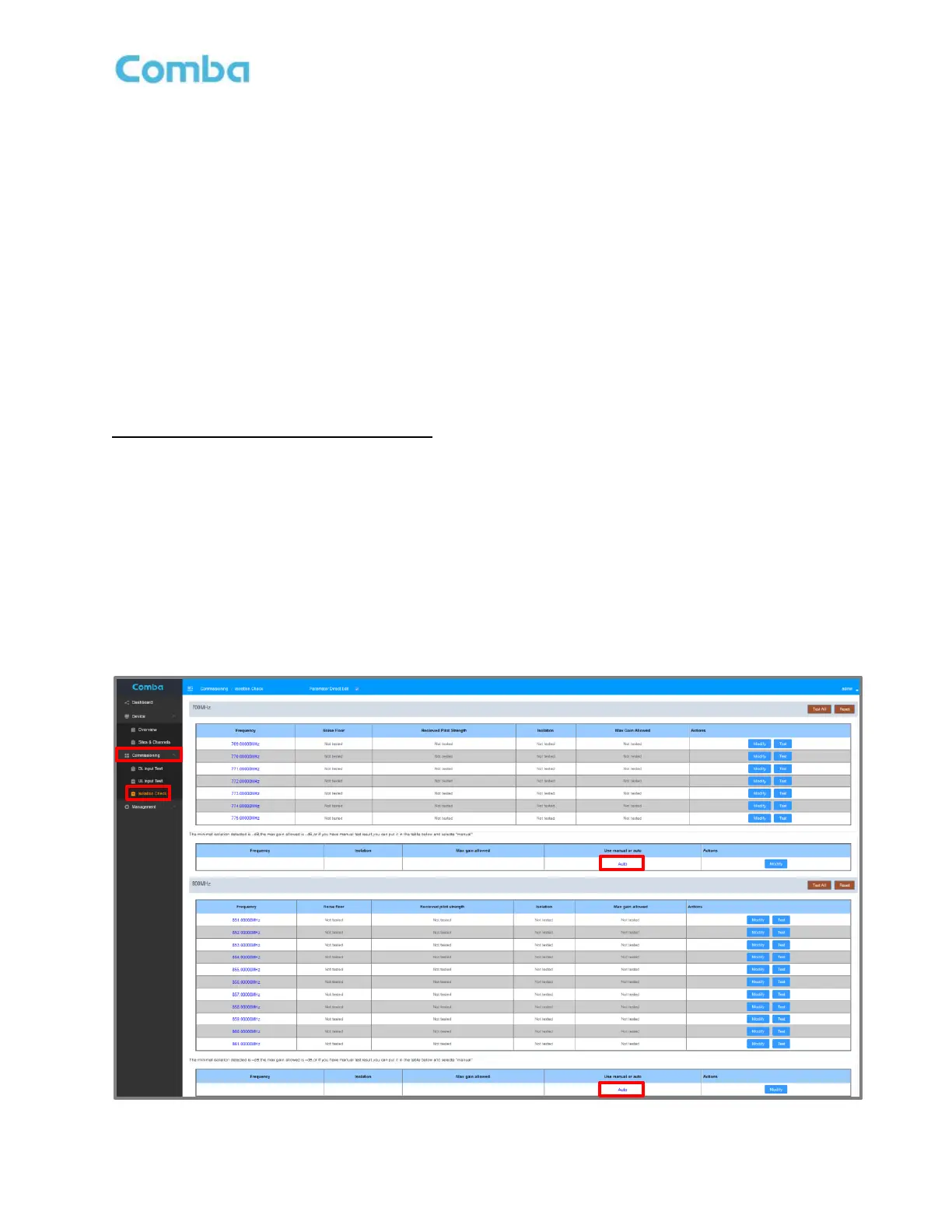 frequency, it will move forward with performing the Isolation Measurement for that frequency.