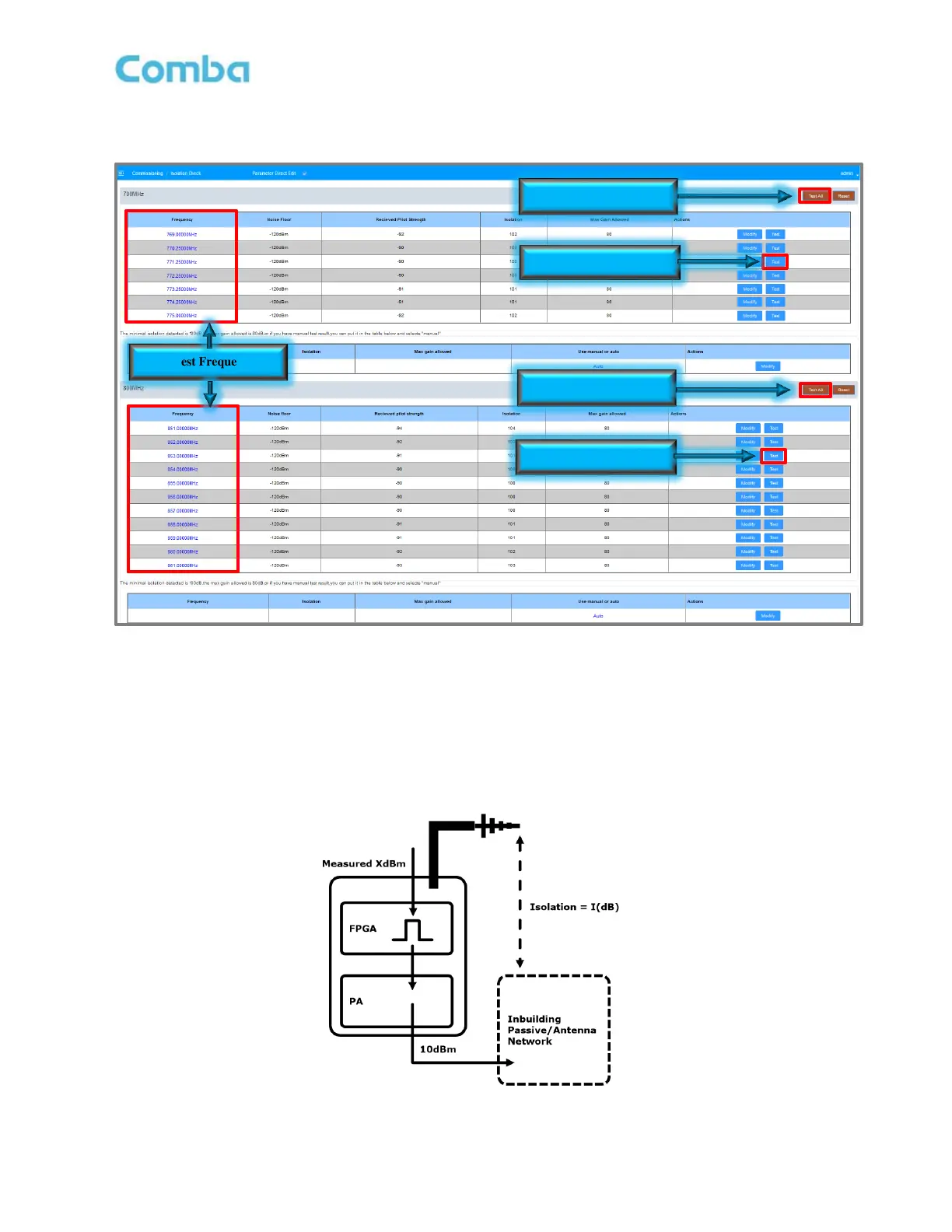 frequency to test isolation for that specific frequency only. Wait for all tests to be completed.