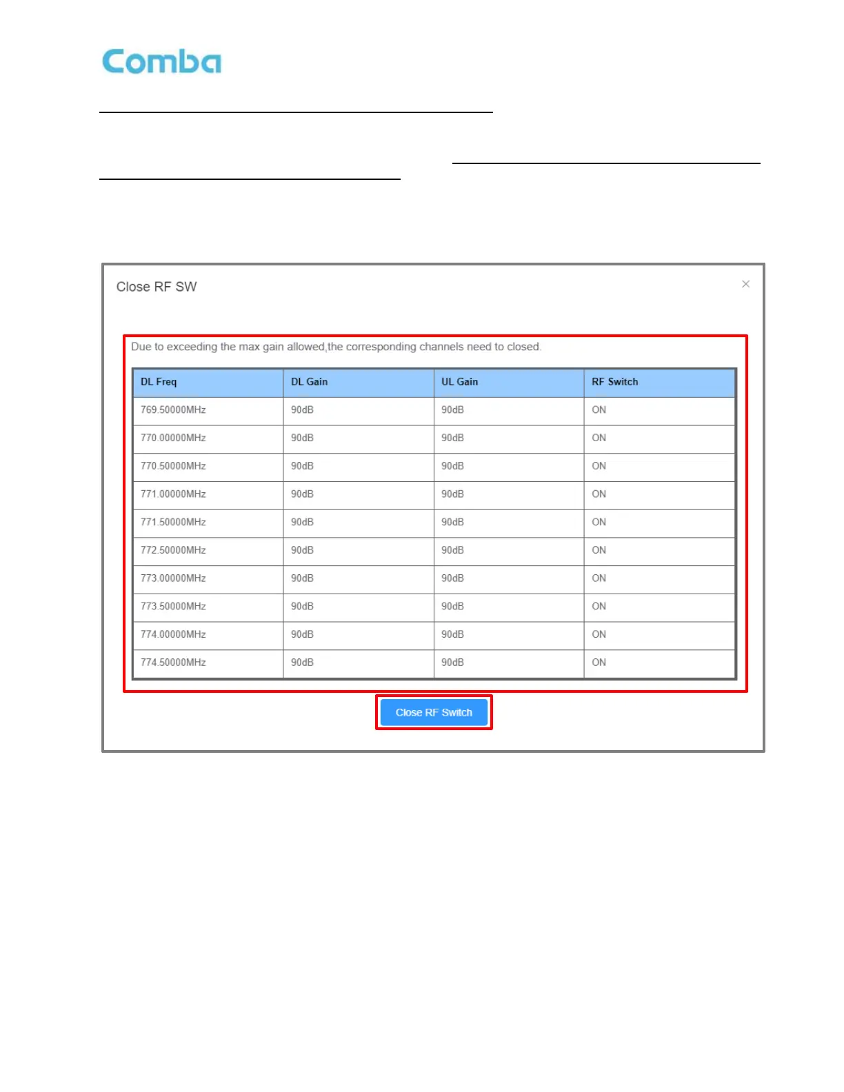 the RF Switches. The user must then lower the gain below the MAX Allowed to turn the Filter SW back on