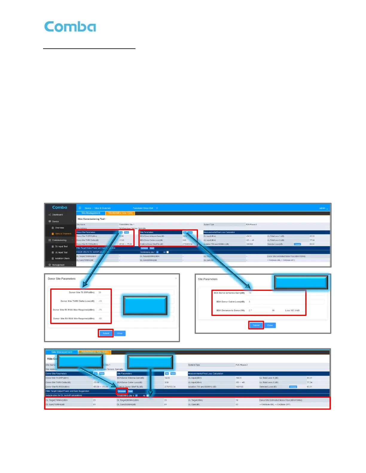 Site TX ERP (dBm), Donor Site TX/RX Delta (dB), and the Donor Site RX RSSI (dBm).