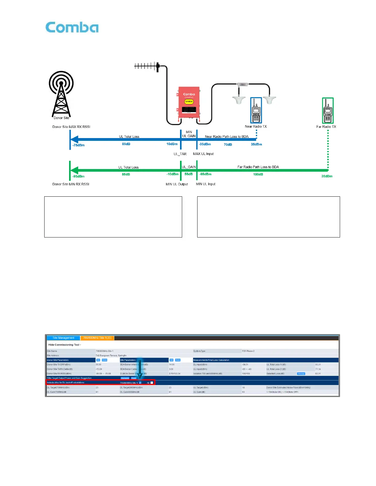 • In the <Include sites for DL backoff calculations> section of the commissioning tool, select the site(s)