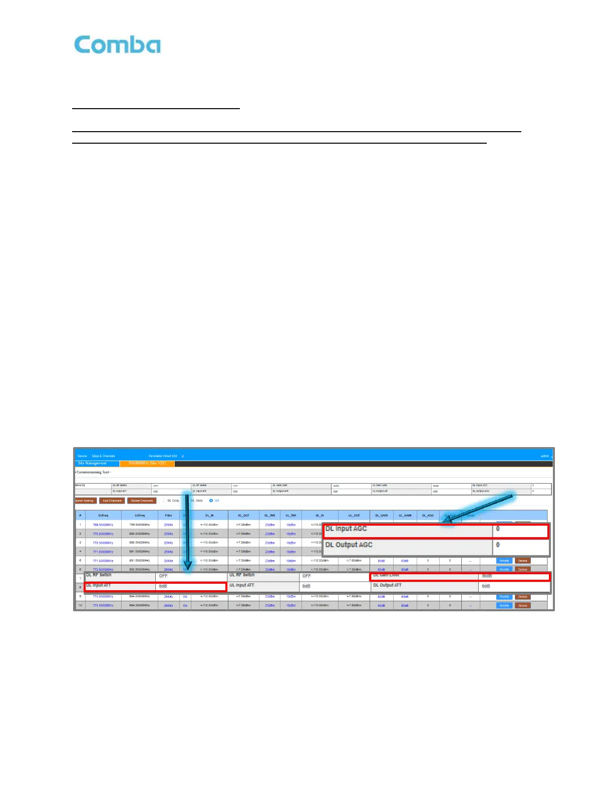 b. Use DL Input ATT, to reduce the DL Input AGC to be below 10dB, if total gain required is >65dB.