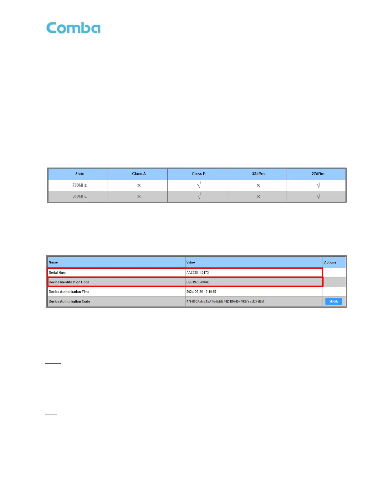 to Dual Band, Power Level from 27 – 33dBm, and Filter Class from Class B to Class A. The complete list of