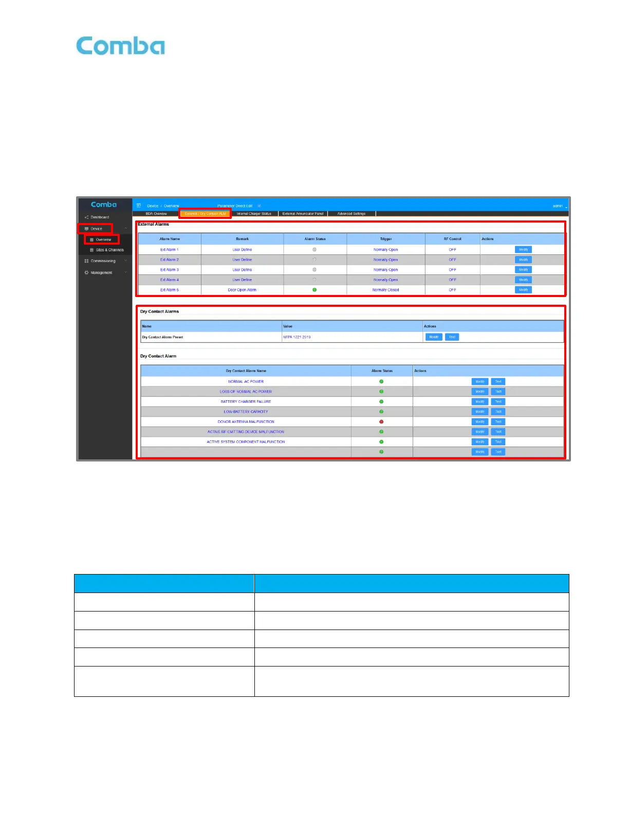 • Navigate to <Device – Overview - External/Dry Contact ALM>